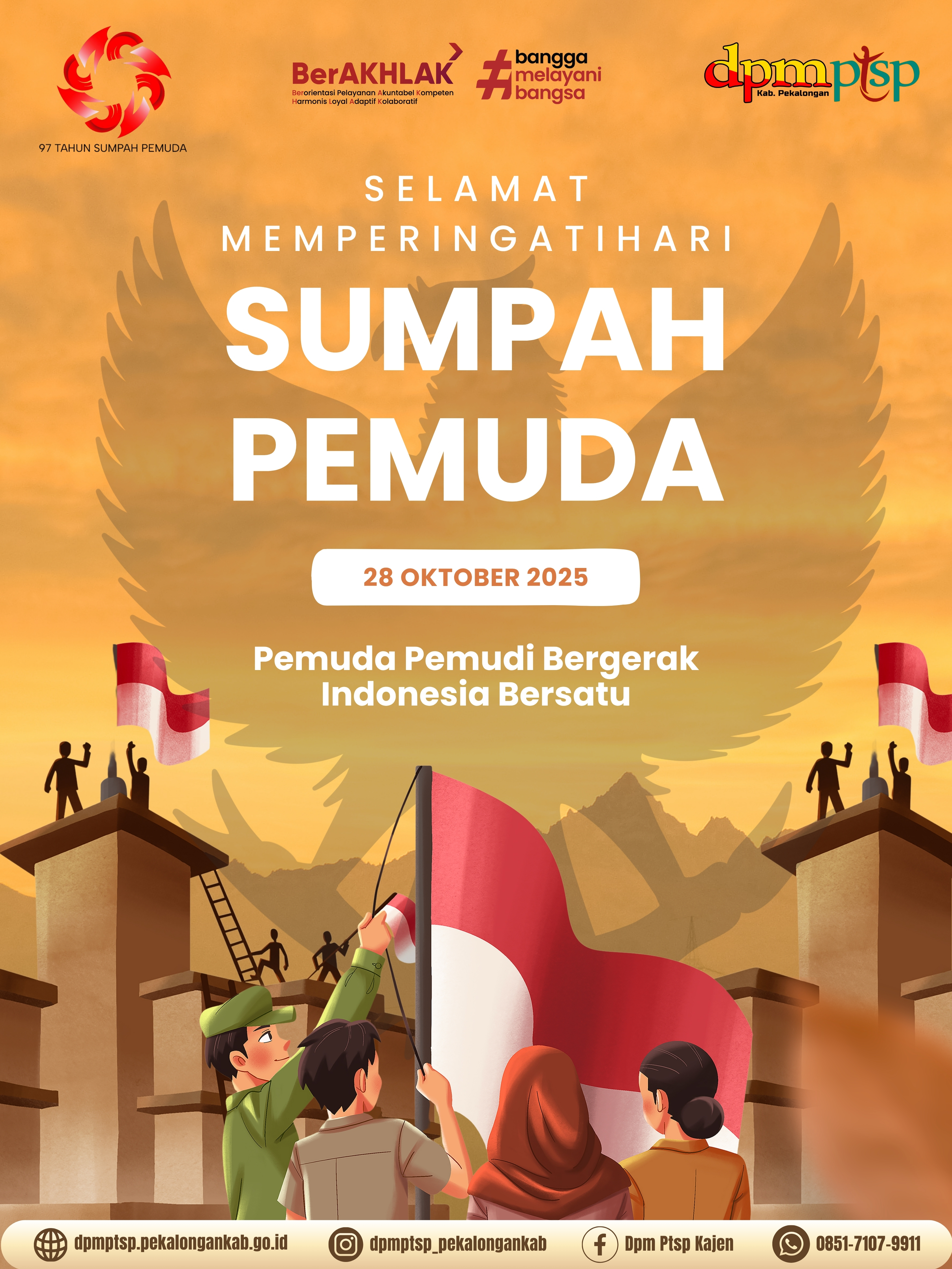 Hari Sumpah Pemuda Ke - 97 Tahun 2025 Admin Ptsp Berita 28 October 2025 Hits: 43 Selamat Memperingati Hari SUMPAH PEMUDA"Pemuda Pemudi Bergerak, Indonesia Bersatu" Facebook Twitter Next